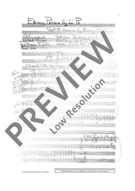 "Seventeen Poems by Li Po - Performing Score" Sheet Music by Harry Partch