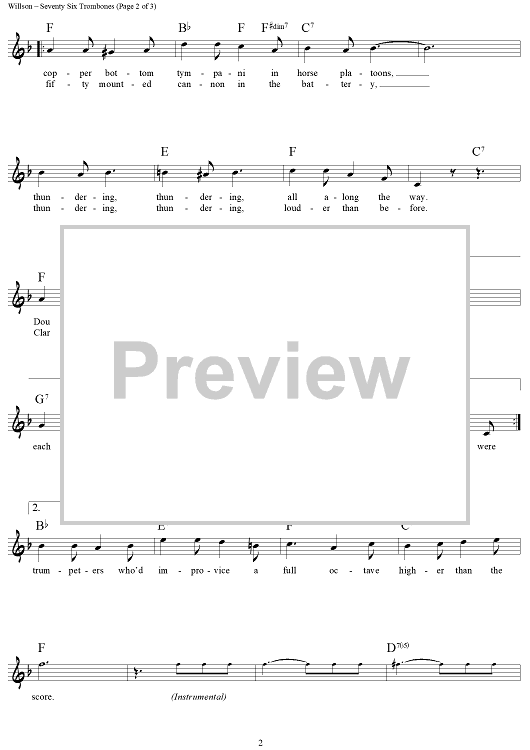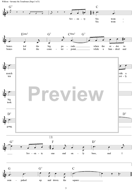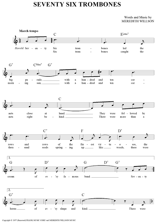 Digital Sheet Music for Seventy Six Trombones by Meredith Willson scored for Lead Sheet; id:447313