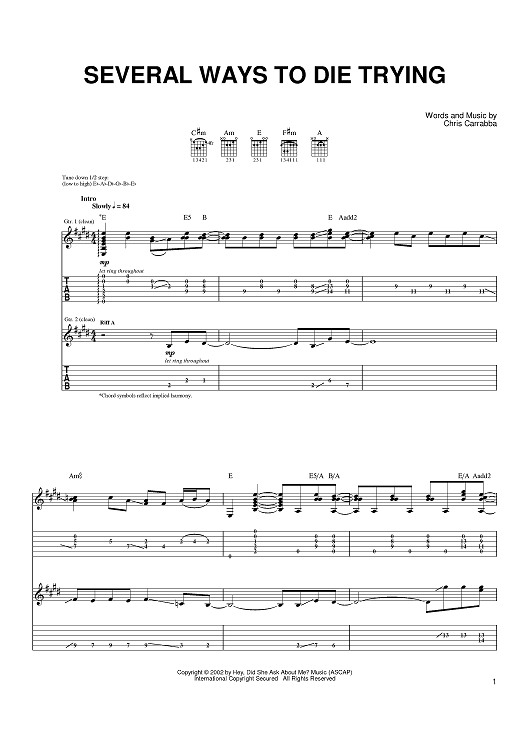 Digital Sheet Music for Several Ways To Die Trying by Chris Carrabba, Dashboard Confessional scored for Guitar Tab; id:381841