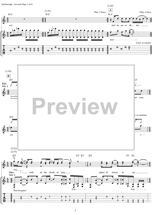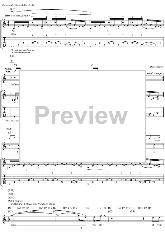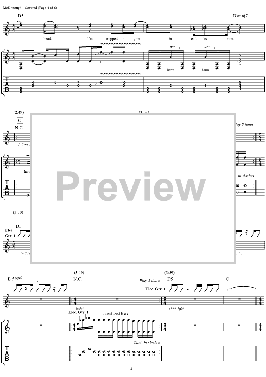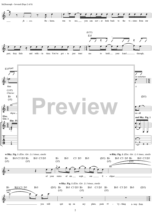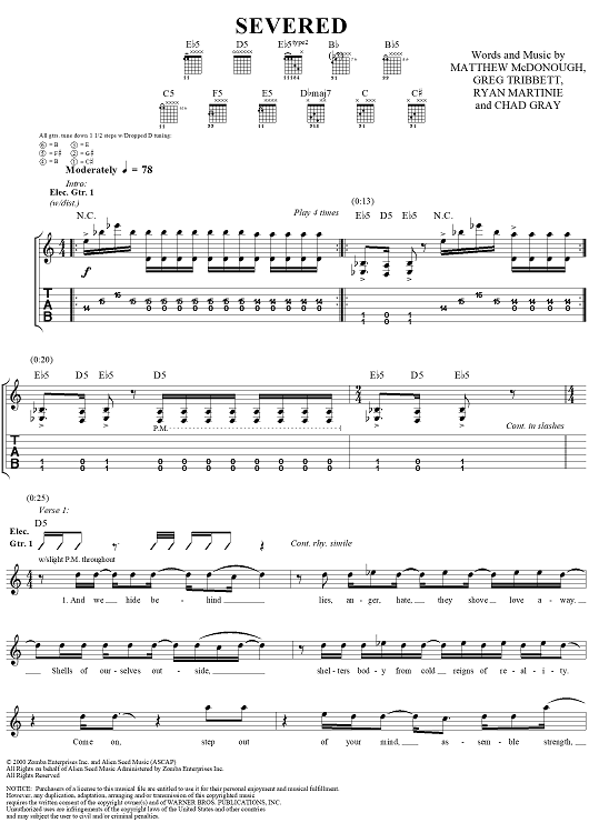 Digital Sheet Music for Severed by Matthew McDonough, Gurrg, Ry-Know, Chad Gray, Mudvayne scored for Guitar Tab/Vocal; id:287908