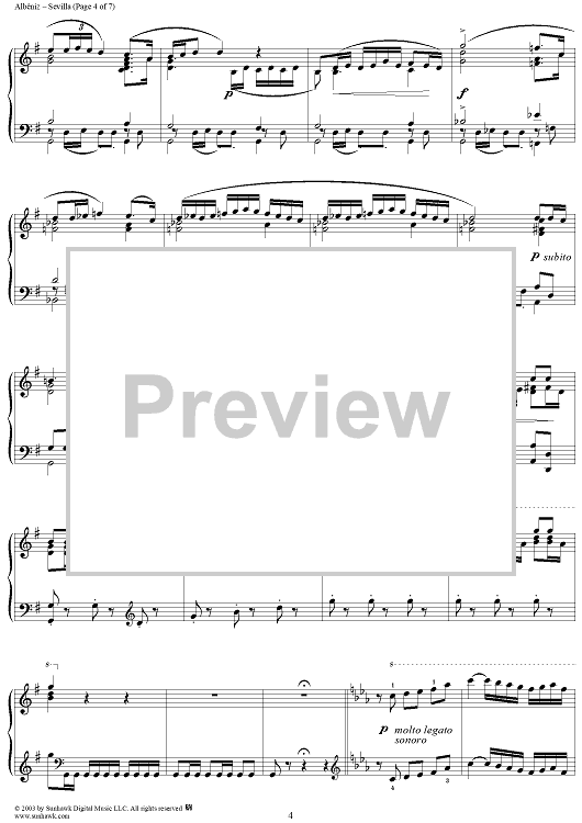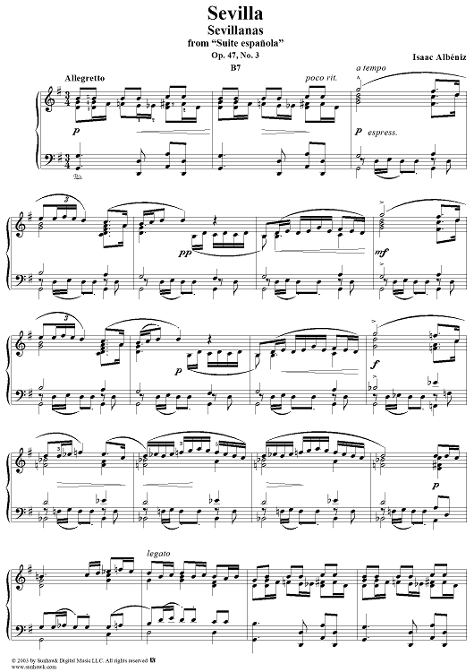 Digital Sheet Music for Sevilla in G Major by Isaac Albéniz scored for Piano Solo; id:294156