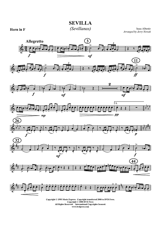 "Sevilla (Sevillanas) - Horn in F" Sheet Music by Isaac Albéniz