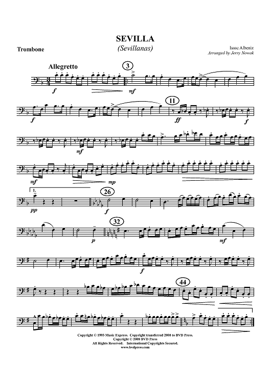 "Sevilla (Sevillanas) - Trombone" Sheet Music by Isaac Albéniz