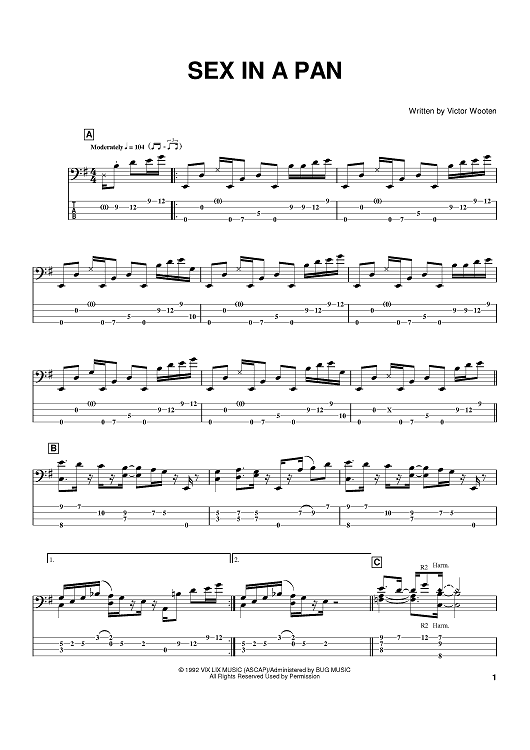 Digital Sheet Music for Sex In A Pan by Bela Fleck, The Flecktones, Victor Wooten scored for Bass Tab; id:371828