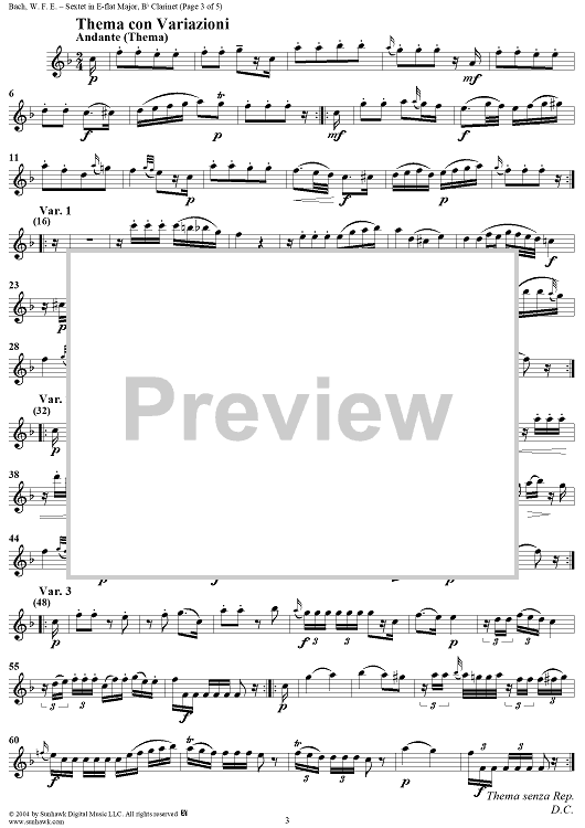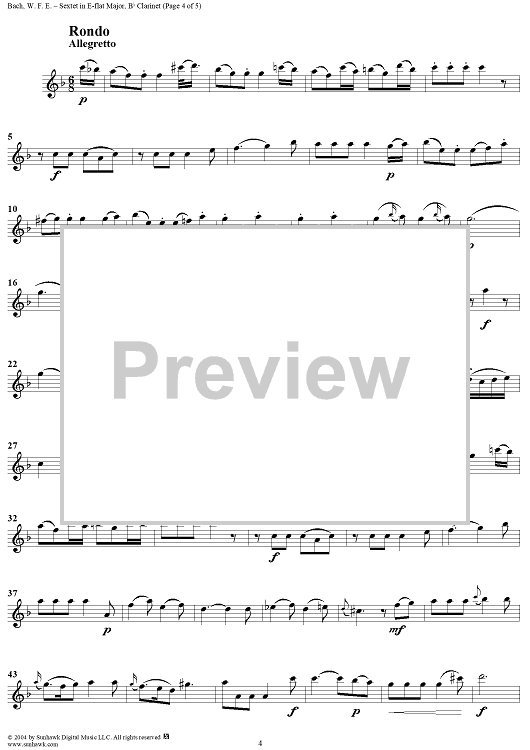Digital Sheet Music for Sextet in E-flat Major - B-flat Clarinet by Wilhelm Friedrich Ernst Bach scored for Sextet; id:303830
