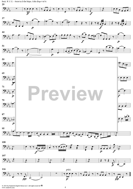 Digital Sheet Music for Sextet in E-flat Major - Cello by Wilhelm Friedrich Ernst Bach scored for Sextet; id:303825