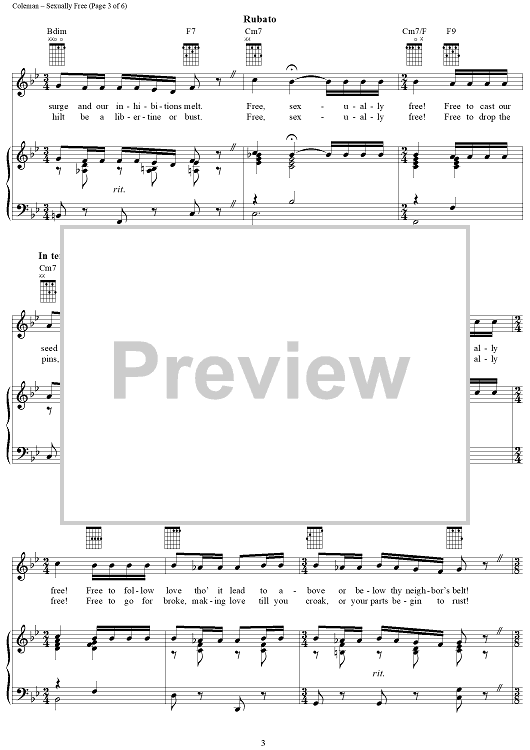 Digital Sheet Music for Sexually Free by Cy Coleman, Michael Stewart scored for Piano/Vocal/Chords; id:312571