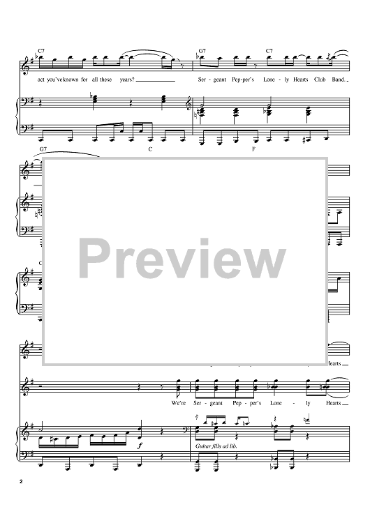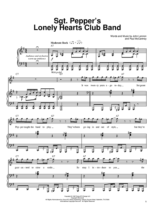 Digital Sheet Music for Sgt. Pepper's Lonely Hearts Club Band by Paul McCartney, The Beatles, John Lennon scored for Piano/Vocal/Chords; id:371697