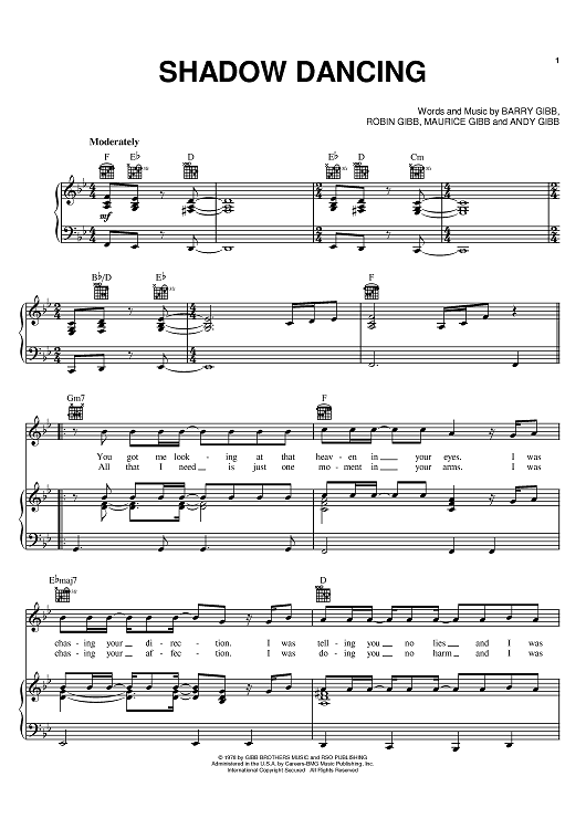 Digital Sheet Music for Shadow Dancing by Maurice Gibb, Barry Gibb, Robin Gibb, Andy Gibb scored for Piano/Vocal/Chords; id:383923