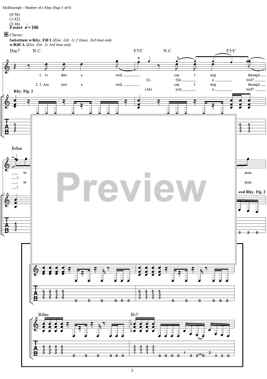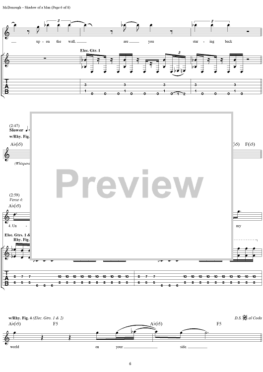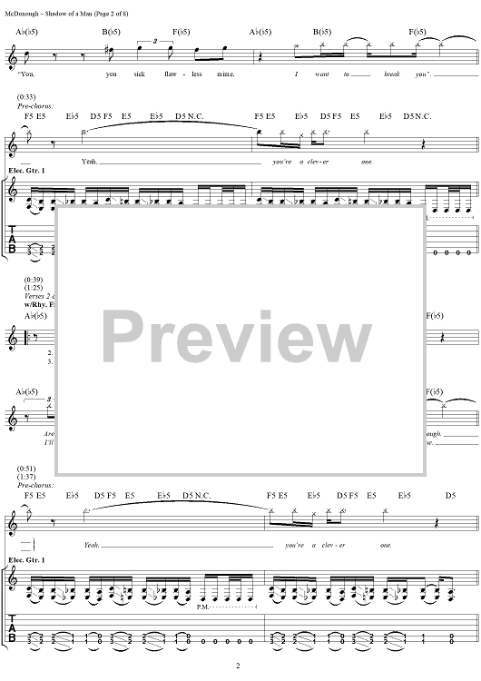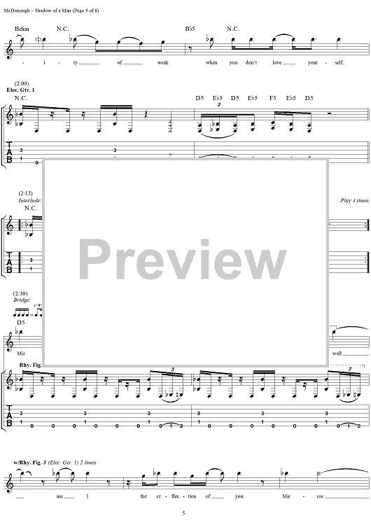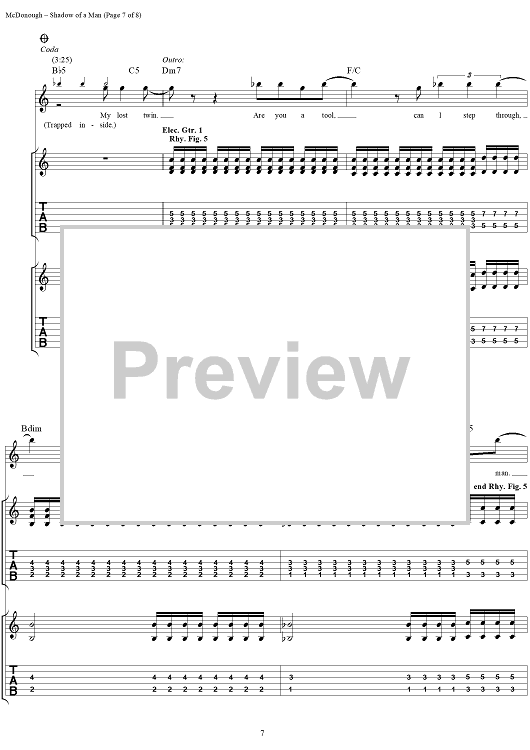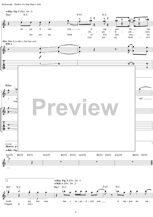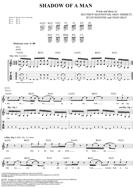 Digital Sheet Music for Shadow of a Man by Matthew McDonough, Gurrg, Ry-Know, Chad Gray, Mudvayne scored for Guitar Tab/Vocal; id:297594