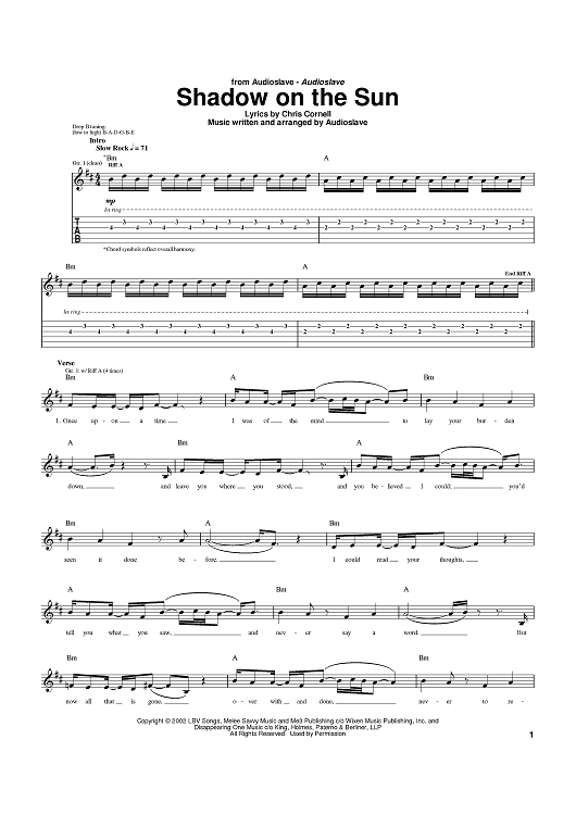 Digital Sheet Music for Shadow On The Sun by Audioslave, Chris Cornell scored for Guitar Tab; id:372420