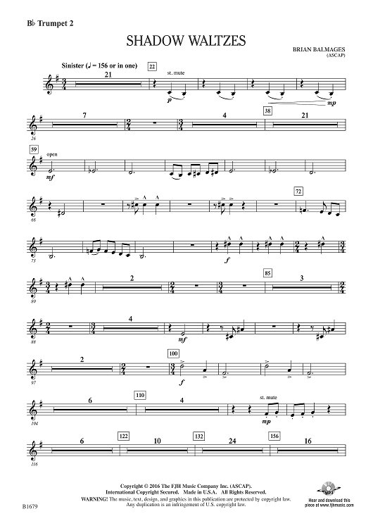 "Shadow Waltzes - Bb Trumpet 2" Sheet Music by Brian Balmages