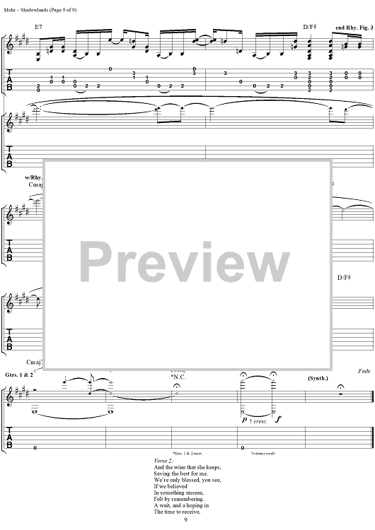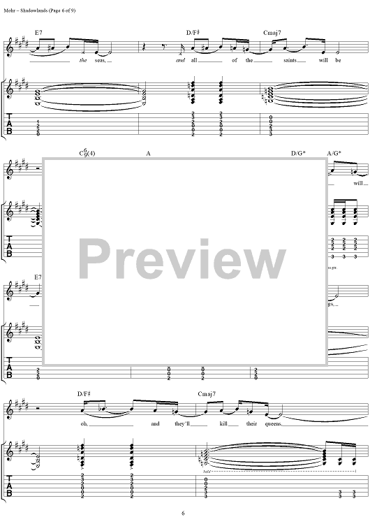 Digital Sheet Music for Shadowlands by Todd Park Mohr, Big Head Todd and the Monsters scored for Guitar Tab/Vocal; id:119554