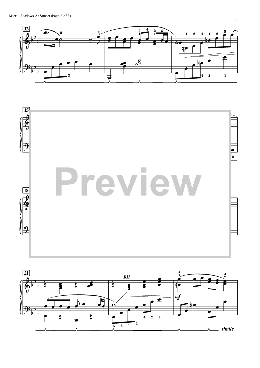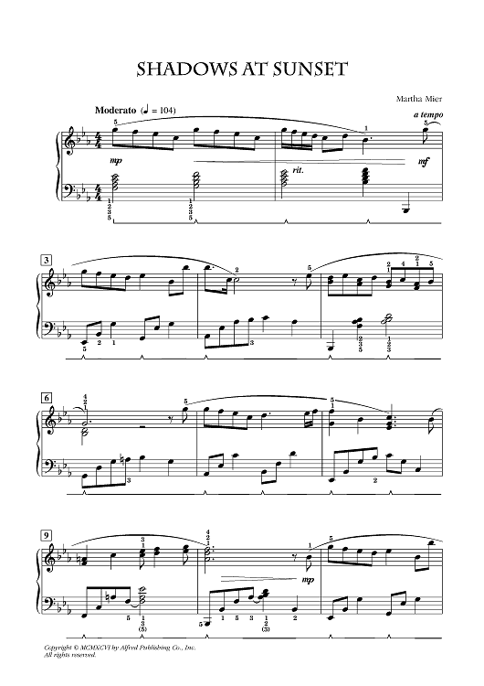 "Shadows At Sunset" Sheet Music by Martha Mier
