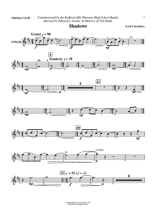 "Shadows - Clarinet 1 in Bb" Sheet Music by Scott Boerma