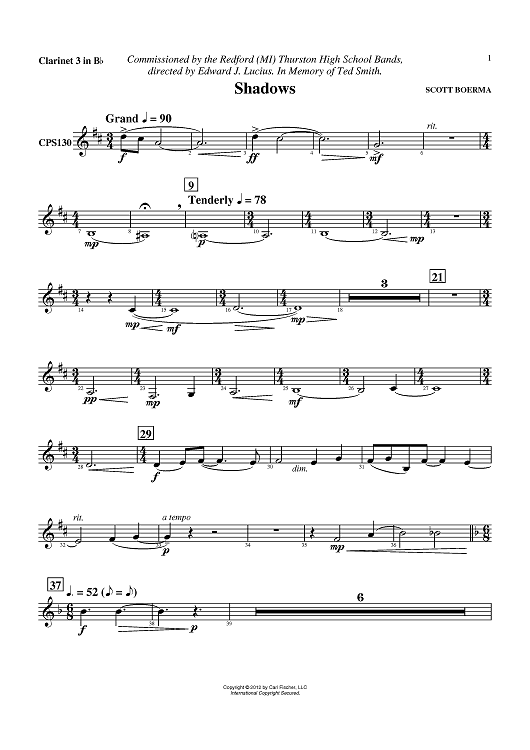 "Shadows - Clarinet 3 in Bb" Sheet Music by Scott Boerma