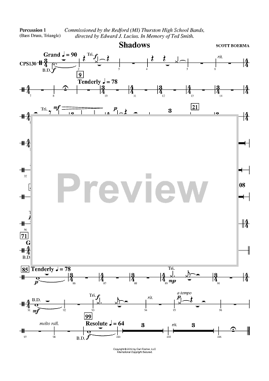 Digital Sheet Music for Shadows - Percussion 1 by Scott Boerma scored for Concert Band; id:430721