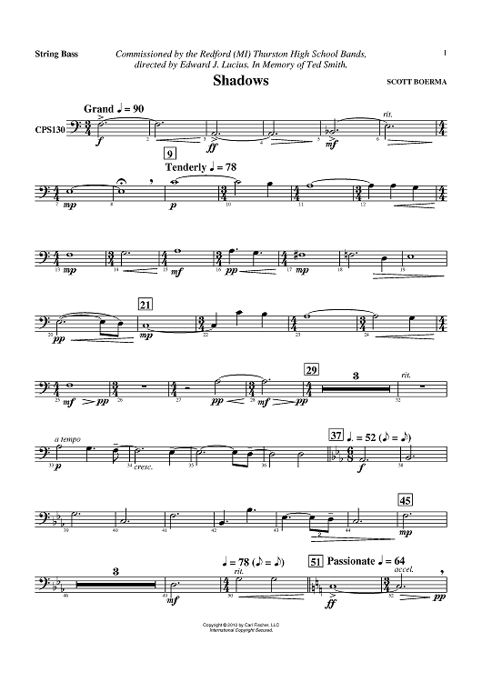 Digital Sheet Music for Shadows - String Bass by Scott Boerma scored for Concert Band; id:430718