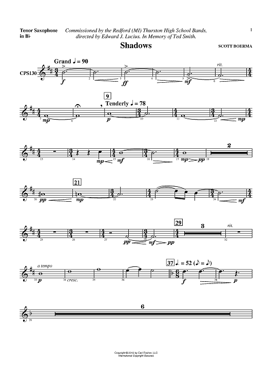"Shadows - Tenor Sax" Sheet Music by Scott Boerma