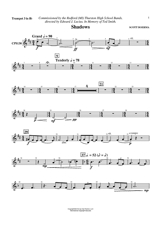 "Shadows - Trumpet 3 in Bb" Sheet Music by Scott Boerma