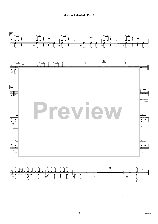 Digital Sheet Music for Shadows Unleashed - Percussion 1 by Brian Balmages scored for Concert Band; id:440436