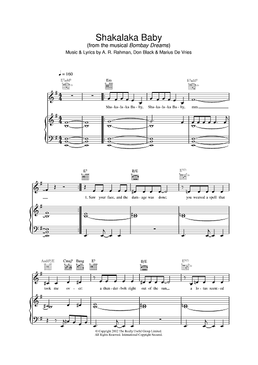 Digital Sheet Music for Shakalaka Baby by scored for Piano/Vocal/Chords; id:378312