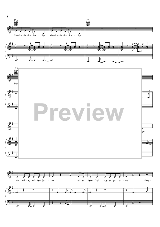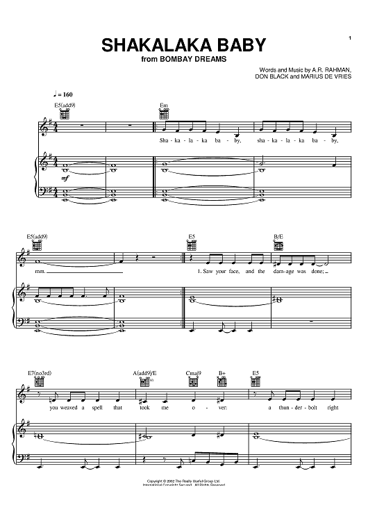 Digital Sheet Music for Shakalaka Baby by Don Black, Marius De Vries, Preeya Kalidas, A. R. Rahman scored for Piano/Vocal/Chords; id:379515