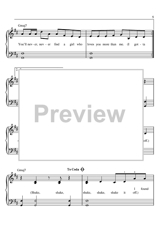 Digital Sheet Music for Shake It Off by Mariah Carey, Jermaine Dupri, Bryan-Michael Cox, Johnta Austin scored for Easy Piano; id:397314