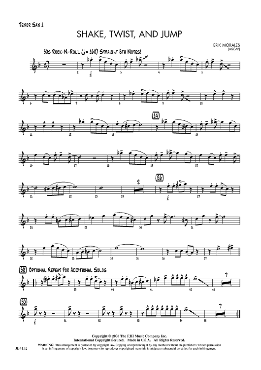 "Shake, Twist, and Jump - Tenor Sax 1" Sheet Music by Erik Morales