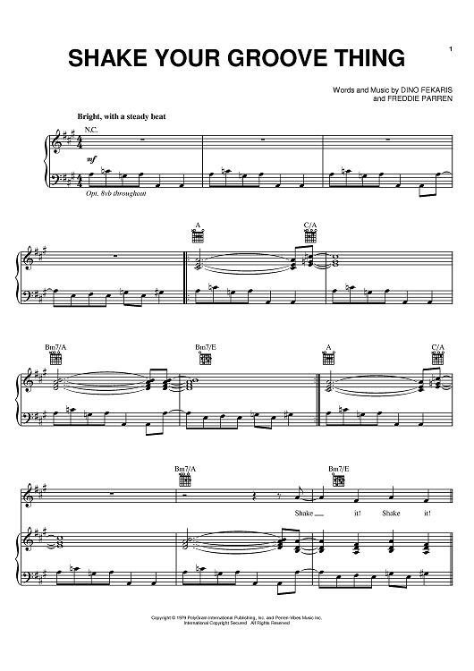 Digital Sheet Music for Shake Your Groove Thing by Dino Fekaris, Freddie Perren, Peaches & Herb scored for Piano/Vocal/Chords; id:383802