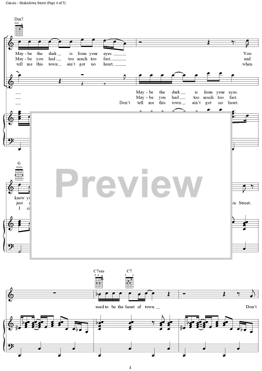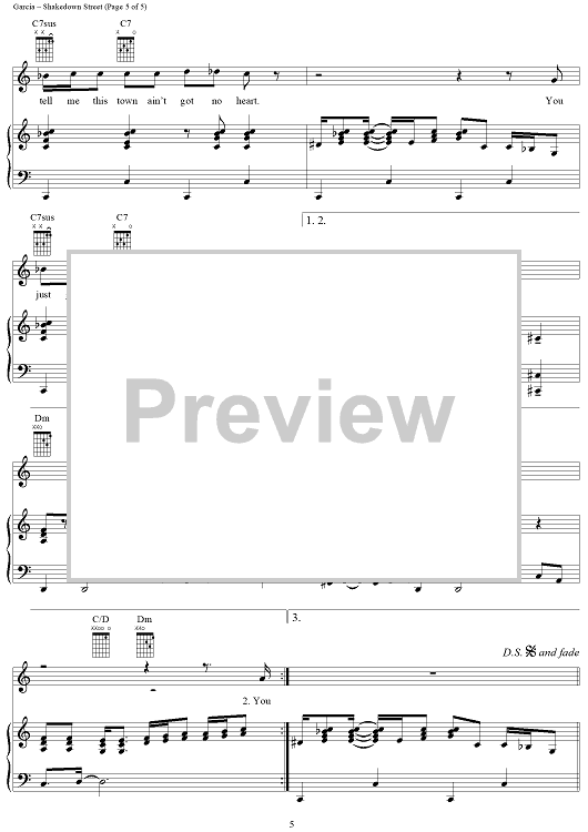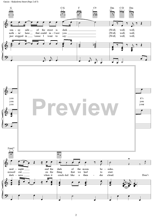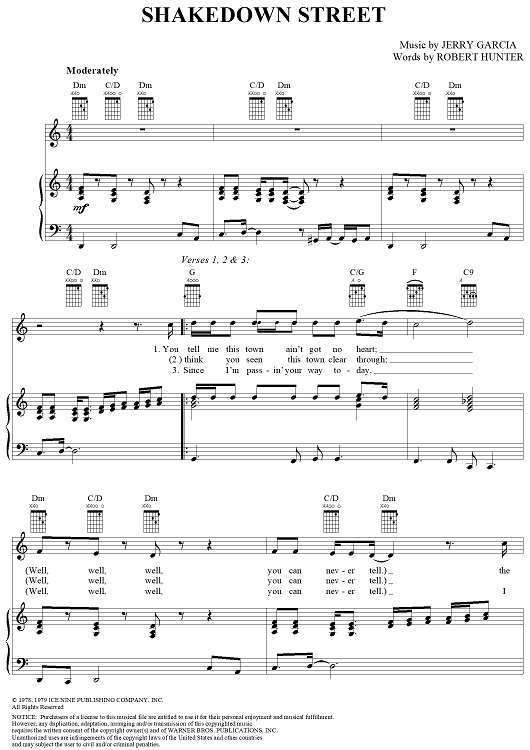 Digital Sheet Music for Shakedown Street by Jerry Garcia, Robert Hunter, Grateful Dead scored for Piano/Vocal/Chords; id:268989