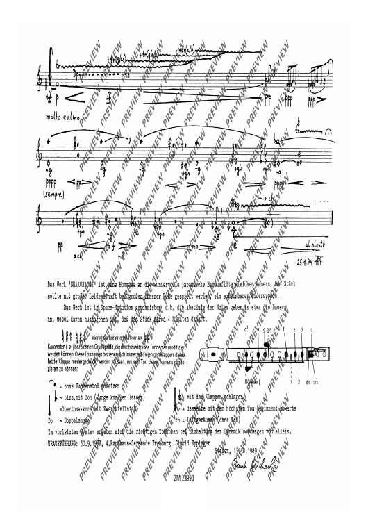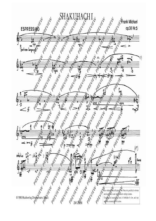 Das Stück ist eine Hommage an die gleichnamige japanische Bambusflöte und soll laut Komponist mit großer Leidenschaft bei großer innerer Ruhe gespielt werden. Es ist mittelschwer und kann daher gut mit Schülern/innen erarbeitet werden, wobei die Assoziation an die japanische Bambusflöte besonders reizvoll ist.