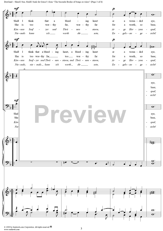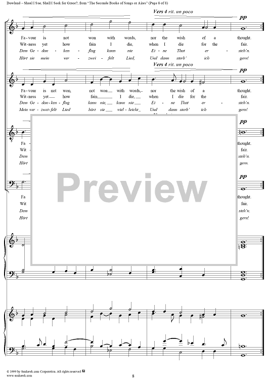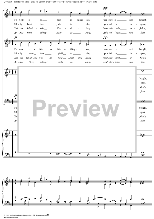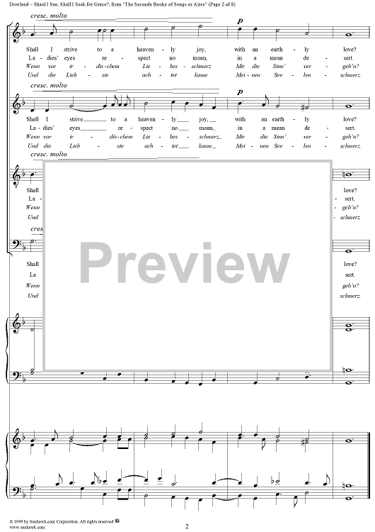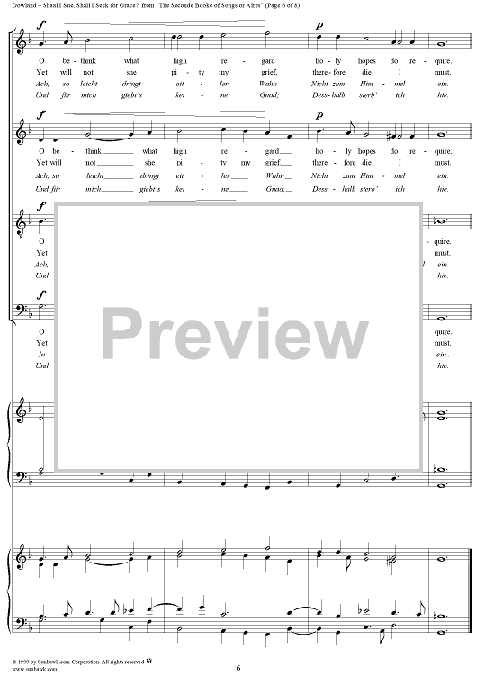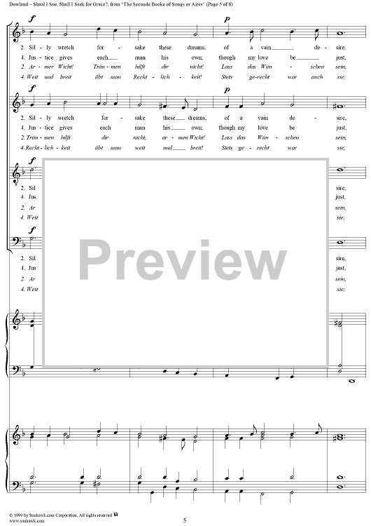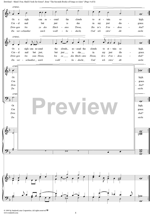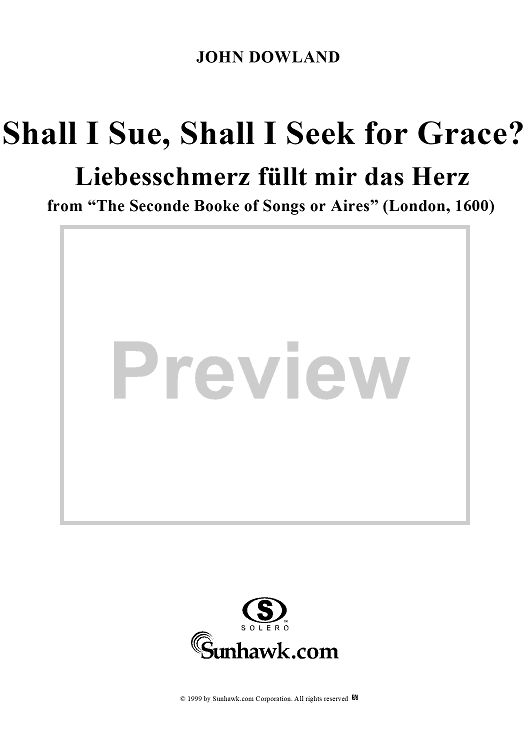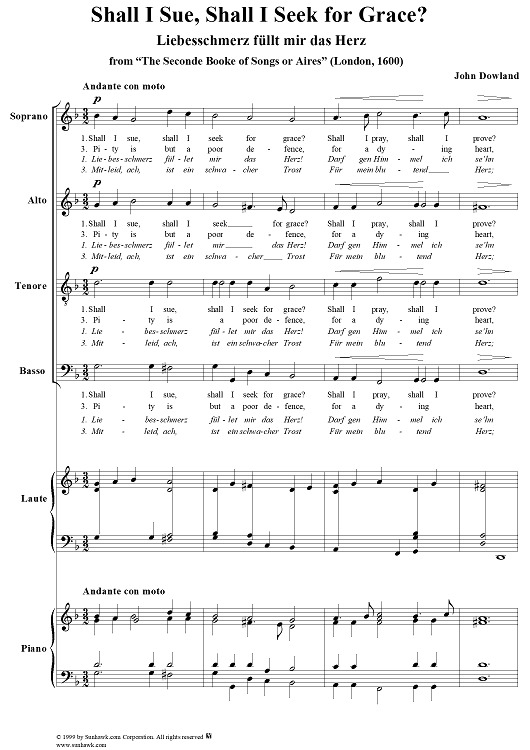 Digital Sheet Music for Shall I Sue, Shall I Seek for Grace? From "The Seconde Booke of Songs or Ayres" by John Dowland scored for Four-part Mixed Chorus/Lute/Piano; id:271217
