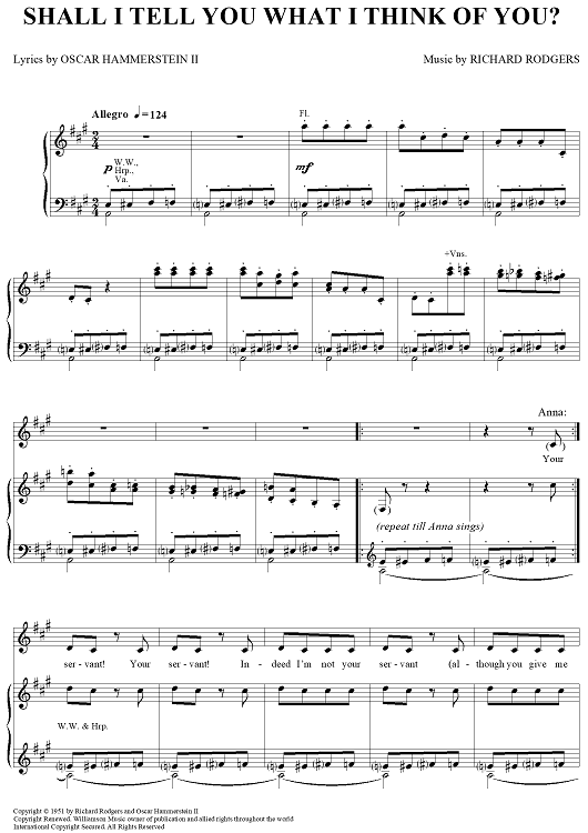 Digital Sheet Music for Shall I Tell You What I Think of You? by Richard Rodgers, Oscar Hammerstein II scored for Piano/Vocal; id:366061