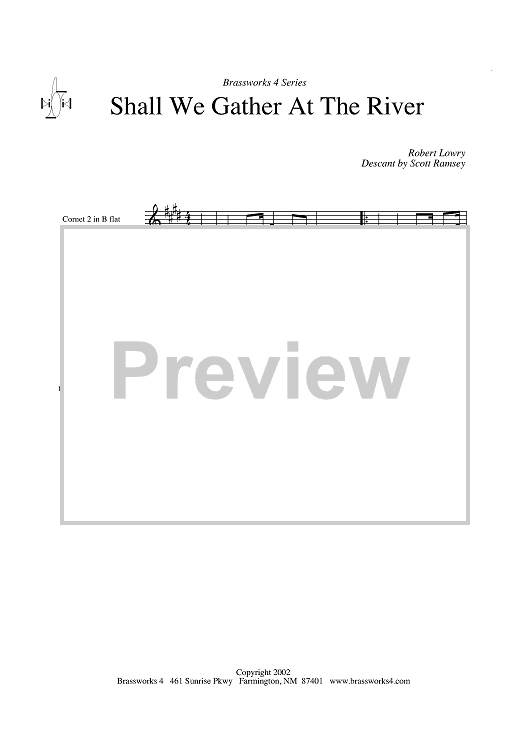 Digital Sheet Music for Shall We Gather At The River - Cornet 2 by Robert Lowry scored for Brass Quartet with Optional Descant; id:317270