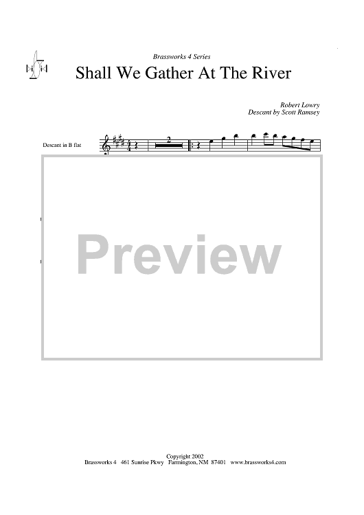 Digital Sheet Music for Shall We Gather At The River - Descant in B-flat by Robert Lowry scored for Brass Quartet with Optional Descant; id:317267