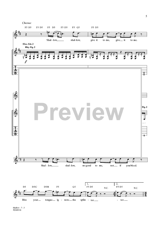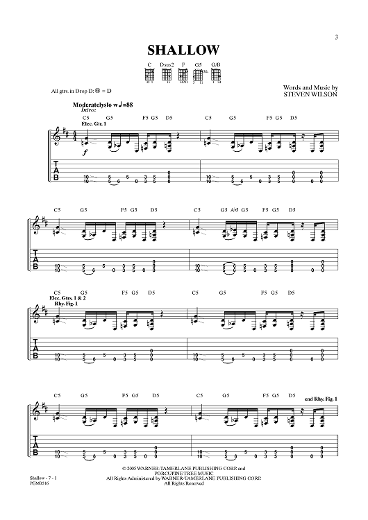 Digital Sheet Music for Shallow by Porcupine Tree, Steven Wilson scored for Guitar Tab/Vocal; id:360021