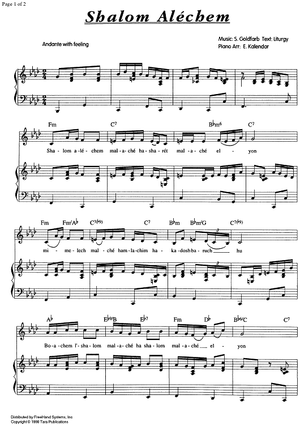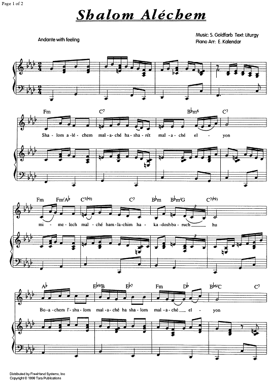Digital Sheet Music for Shalom Aléchem by Samuel E. Goldfarb, Edward Kalendar scored for Voice/Piano; id:343811