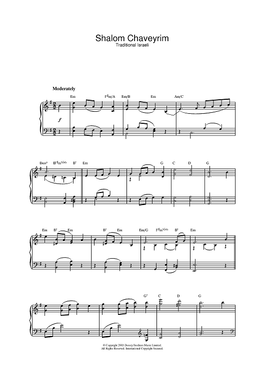 Digital Sheet Music for Shalom Chaveyrim by scored for Piano; id:378674