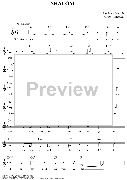 Digital Sheet Music for Shalom by Jerry Herman scored for Lead Sheet; id:447290
