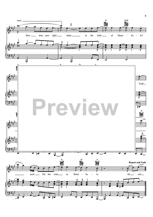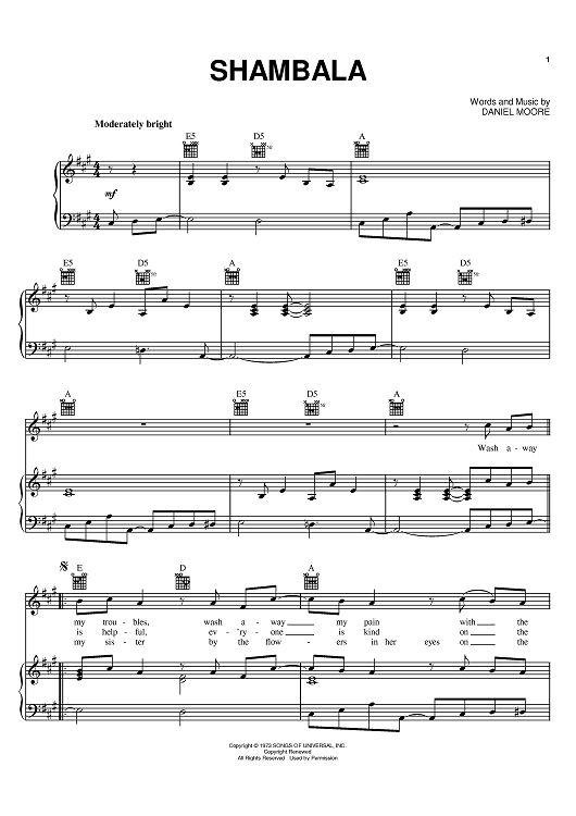 Digital Sheet Music for Shambala by Three Dog Night, Daniel Moore scored for Piano/Vocal/Chords; id:381503