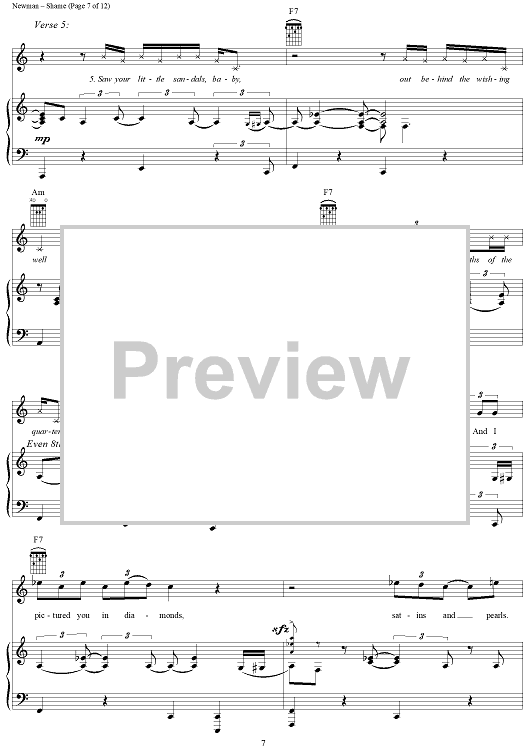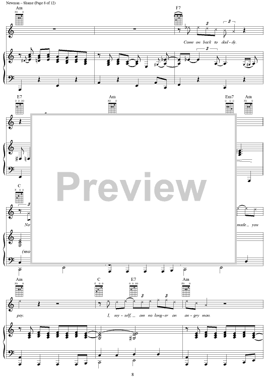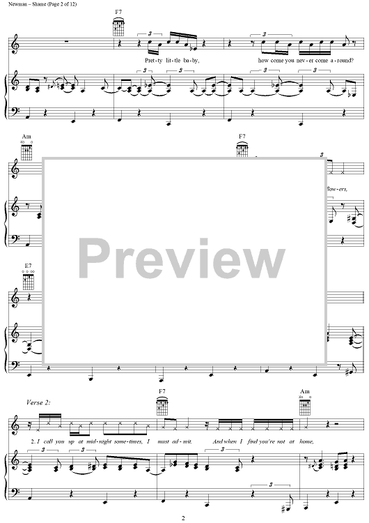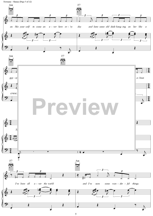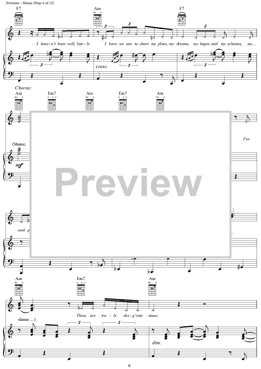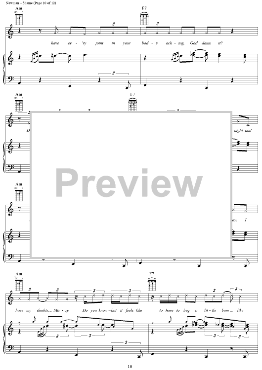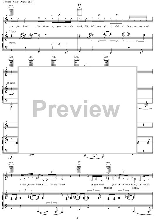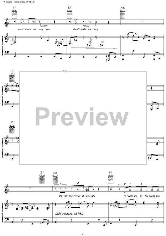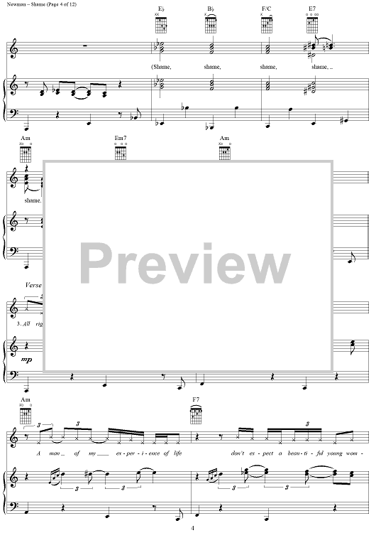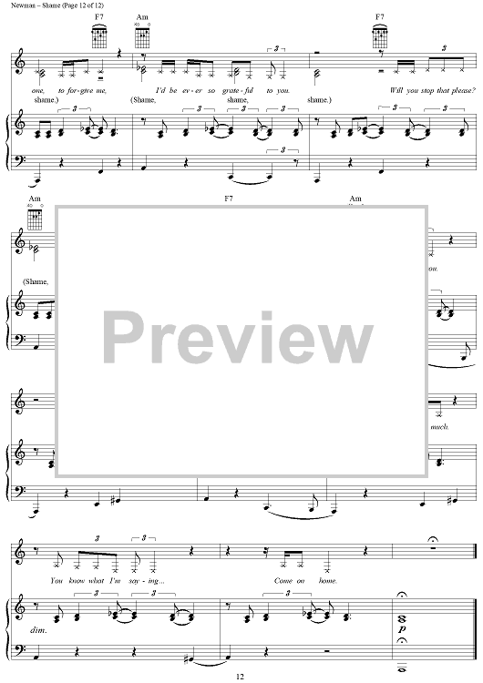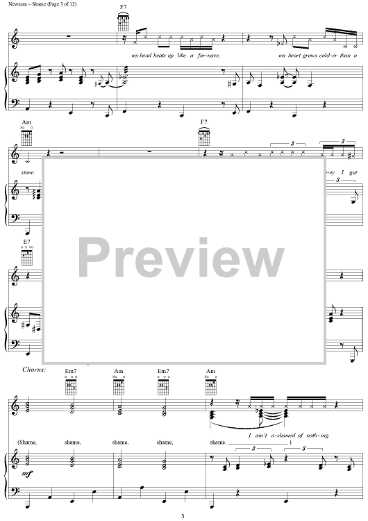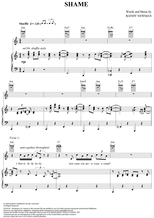 Digital Sheet Music for Shame by Randy Newman scored for Piano/Vocal/Chords; id:253503