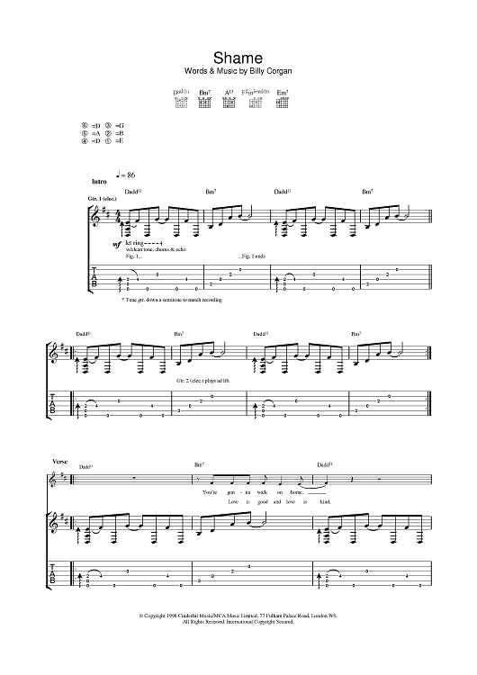 Digital Sheet Music for Shame by Smashing Pumpkins scored for Guitar Tab; id:376754