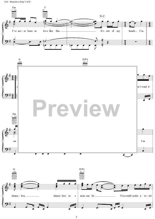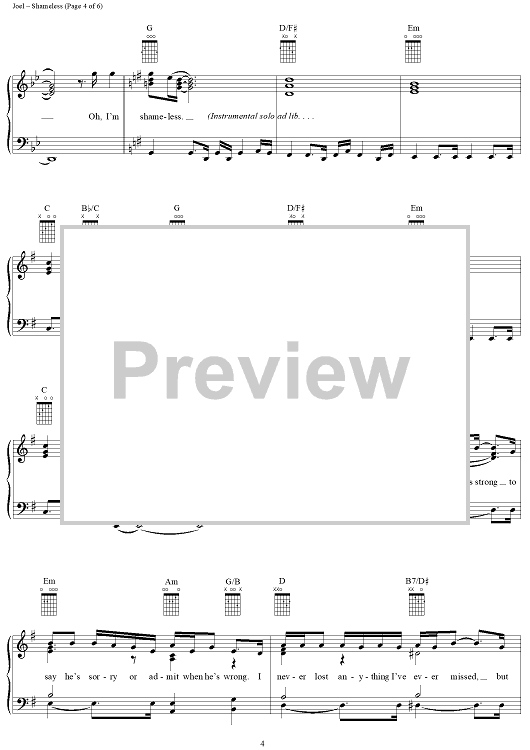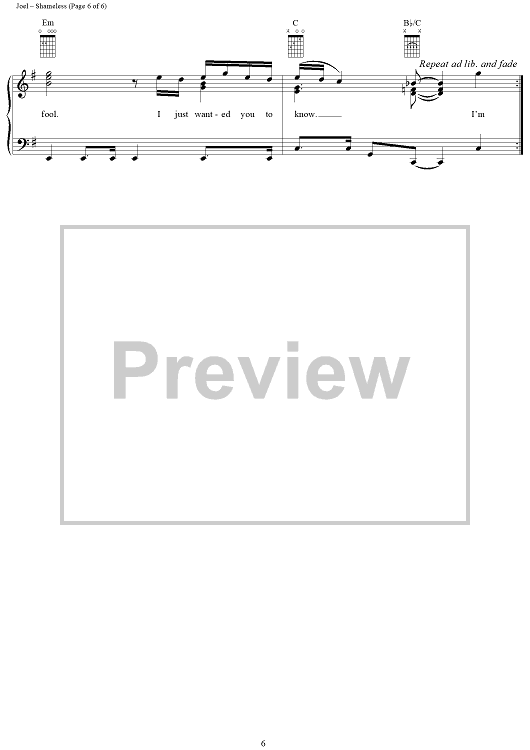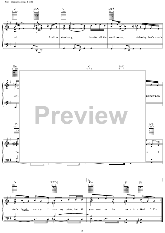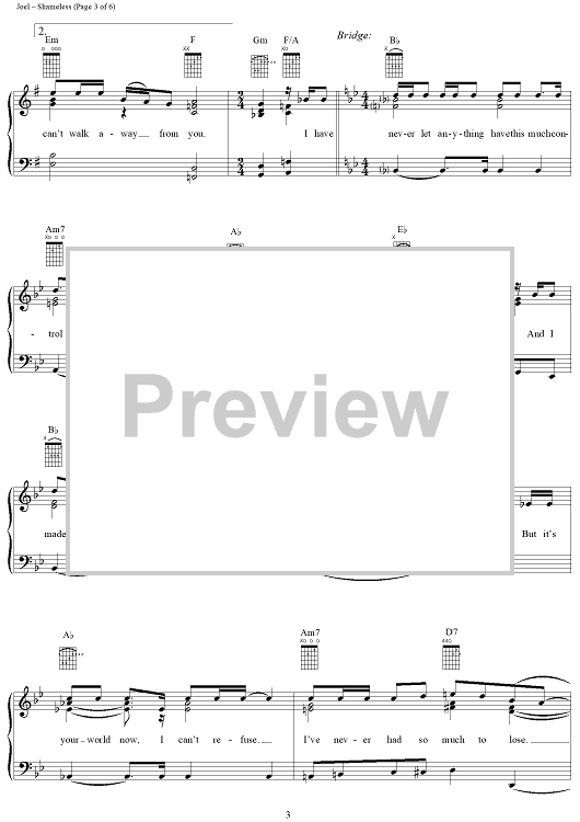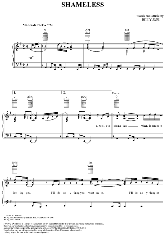 Digital Sheet Music for Shameless by Billy Joel, Garth Brooks scored for Piano/Vocal/Chords; id:265473