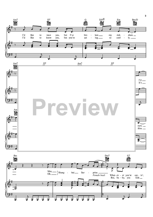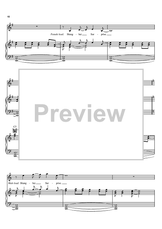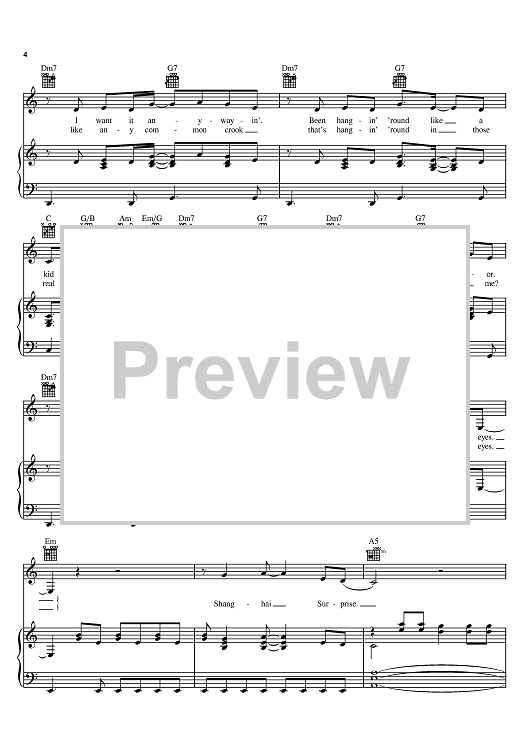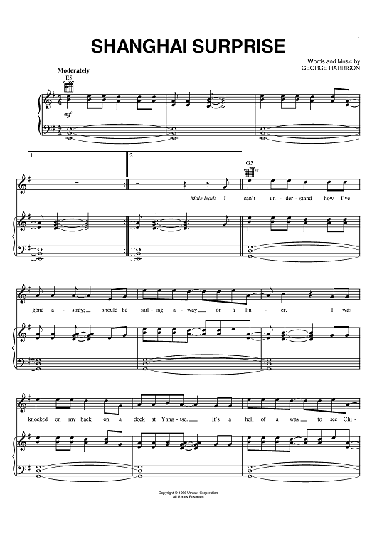Digital Sheet Music for Shanghai Surprise by George Harrison scored for Piano/Vocal/Chords; id:384889
