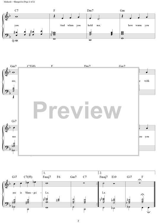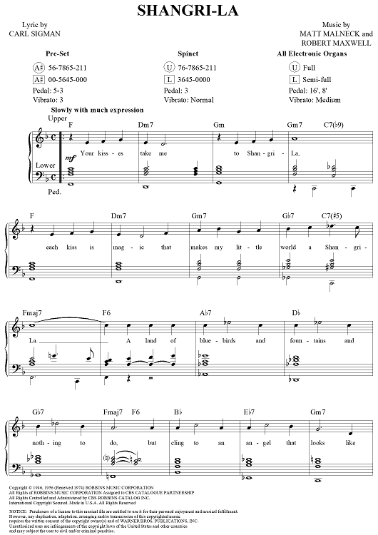 Digital Sheet Music for Shangri-La by Robert Maxwell, Carl Sigman, Matt Malneck scored for Easy Organ/Vocal; id:251455