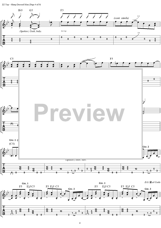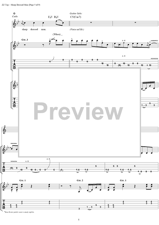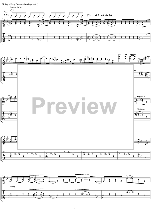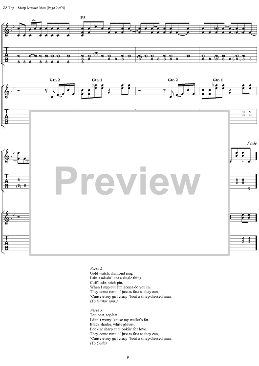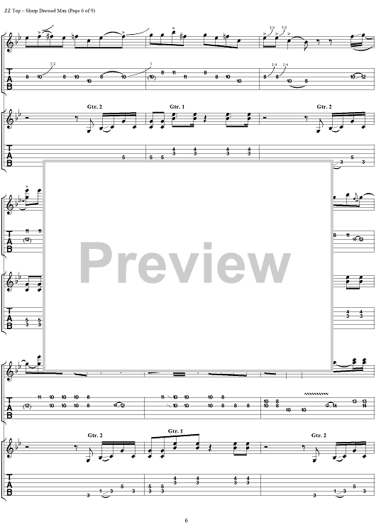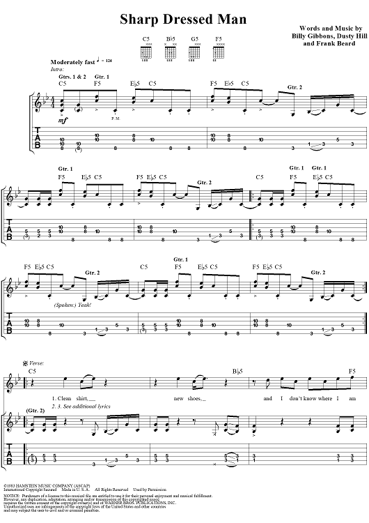 "Sharp Dressed Man" Sheet Music by ZZ Top