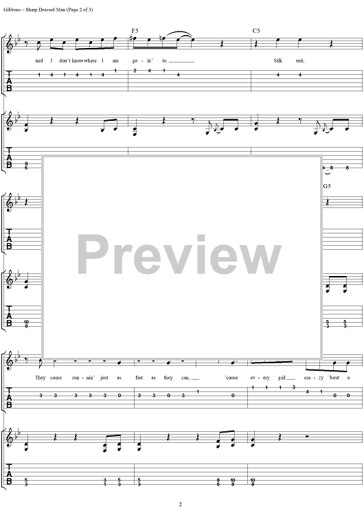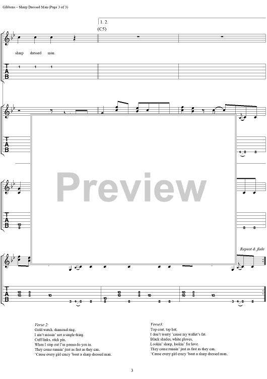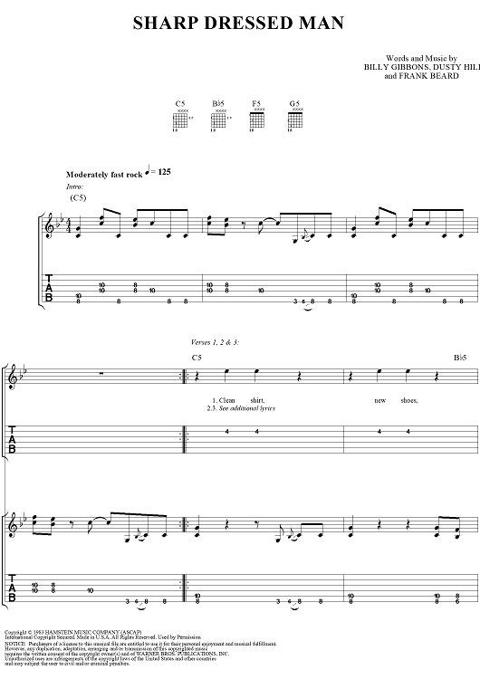 "Sharp Dressed Man" Sheet Music by ZZ Top