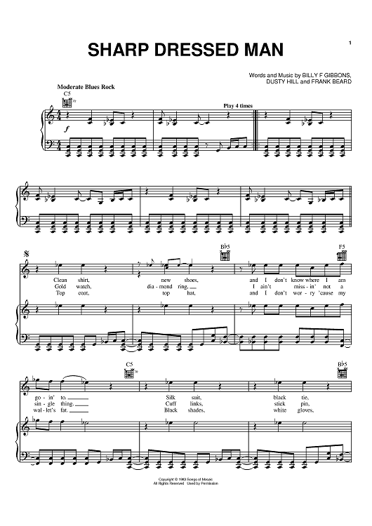 Digital Sheet Music for Sharp Dressed Man by Billy Gibbons, Dusty Hill, Frank Beard, ZZ Top scored for Piano/Vocal/Chords; id:371036