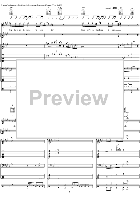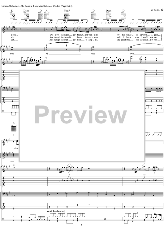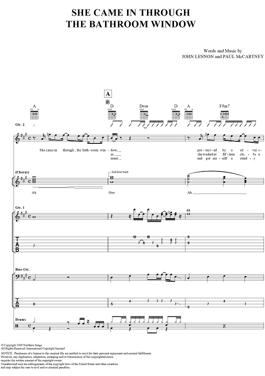 "She Came In through the Bathroom Window" Sheet Music by The Beatles